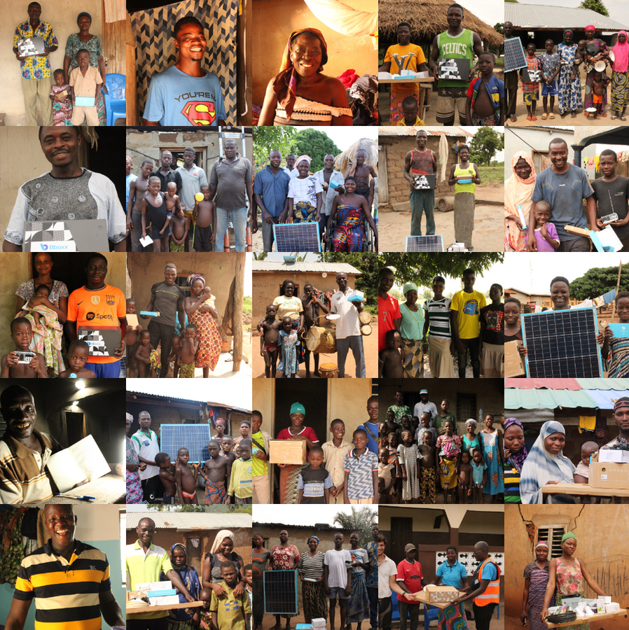 Après une levée de fonds, l'équipe Greenwheel s'est déplacé en Afrique de l'Ouest à moto pour installer 89 kits solaires en coopération avec des initiatives locales, permettant ainsi à des centaines de personnes d'avoir la lumière dans leur village.
